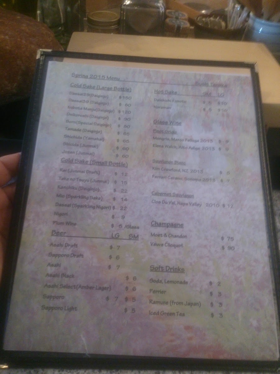 Sushi Tanaka Menu
